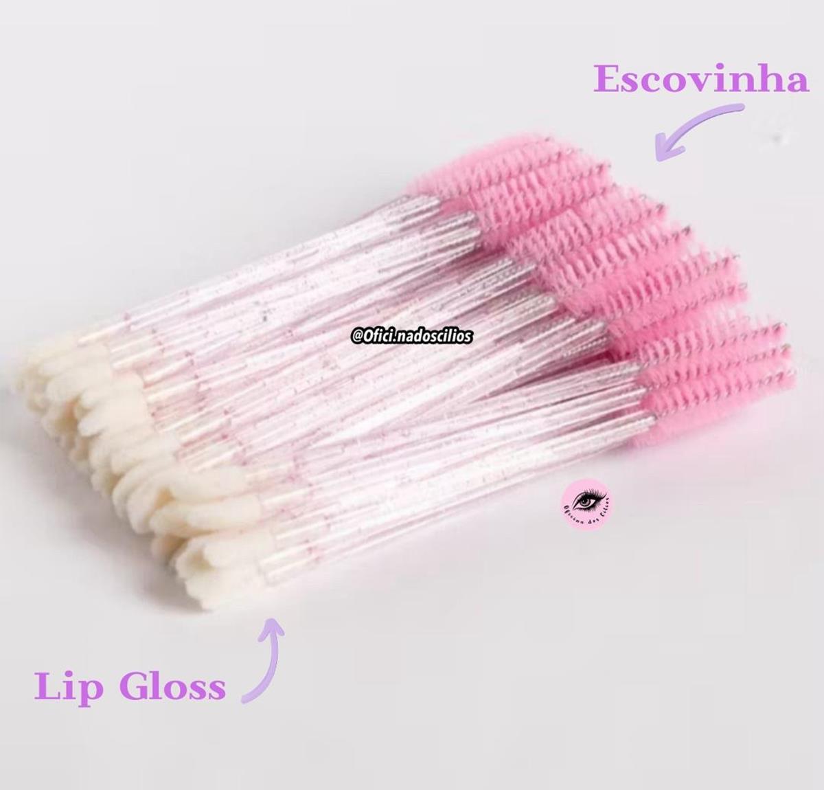 Escovinha descartável com Lip Gloss ponta dupla 2 em 1 50 unidades.